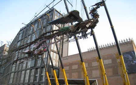 整个吊装的过程,带给人们的不仅仅是视觉的震感,更是心灵上的启示。正如同徐冰先生说的“也只有在中国的环境下,才会激发出这样的灵感和作品,关注社会,关注身边环境,才能带给我们反思和灵感。”